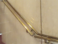 エレベーターは車椅子一台のスペースです。誰か介助者がいないと一人で乗る場合は大変ですが、フロントからエレベーターがすぐ見える位置にあるため万一の場合はスタッフが対応してくれます。エレベーターには、障害者用のスイッチが通常のスイッチとは別に低い位置にあります。階段には、二本の手すりが付いており、握りやすいです。