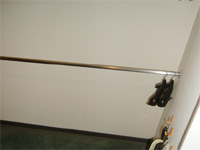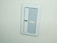 ベッドと壁の間は車椅子が通れるほどのゆとりがあります。電気などのスイッチは、大きなスイッチを低い位置に配置してあります。クローゼットの洋服掛けは低い位置にもつけられています。