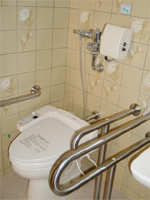 浴槽やトイレは広く、それぞれに手すりがついています。フロントへの電話はボタンを押せばつながるようになっています。