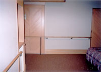 客室入口の鍵の位置も低いところにあり、広さも十分です。室内には、トイレ、浴室、ベッドの3ヶ所に呼び出しスイッチが取り付けてありました。各空間の段差がまったくありませんでした。